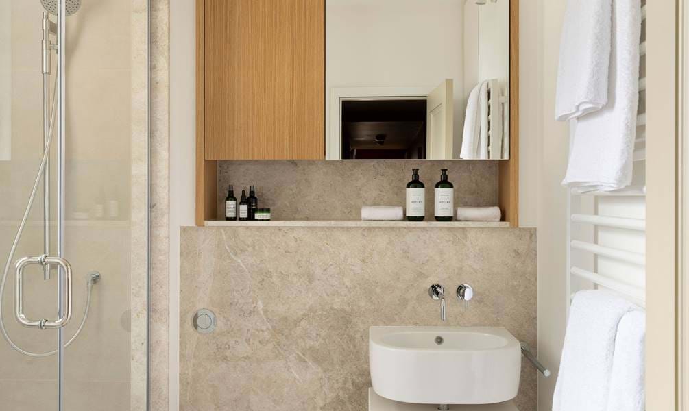 Located on the third floor, Apartment Nine is the largest in the building with a wonderfully spacious living area that is perfect for entertaining. Herringbone wood floors are throughout, and an original feature fireplace and beautiful crown moulding add character to the space. Both bedrooms are spacious with plenty of natural light and the Master Bedroom benefits from a beautifully bright ensuite bathroom features double basins and a walk in shower.