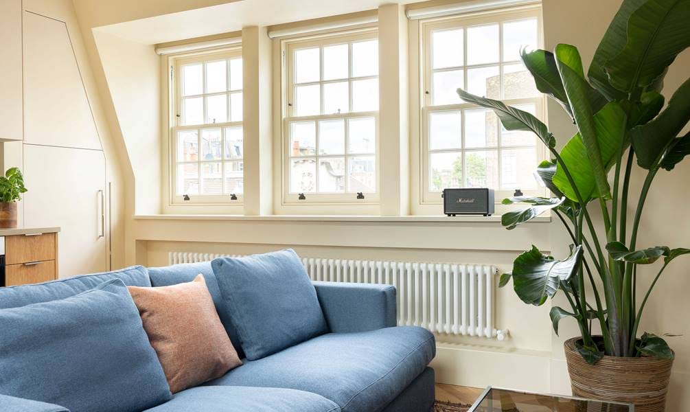Located on the second floor, Apartment Seven is set in the extended section of 65 Harley St views across the Marylebone Rooftops. Herringbone wood floors are a feature throughout.