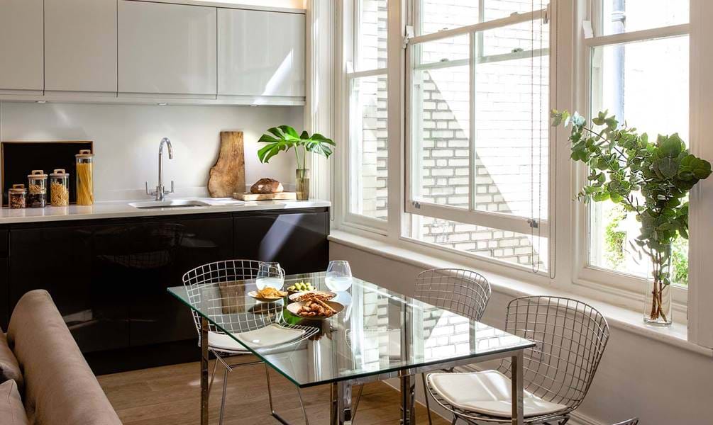 Set over the ground and lower ground floors, this duplex apartment is our most unique at 56 Welbeck St.