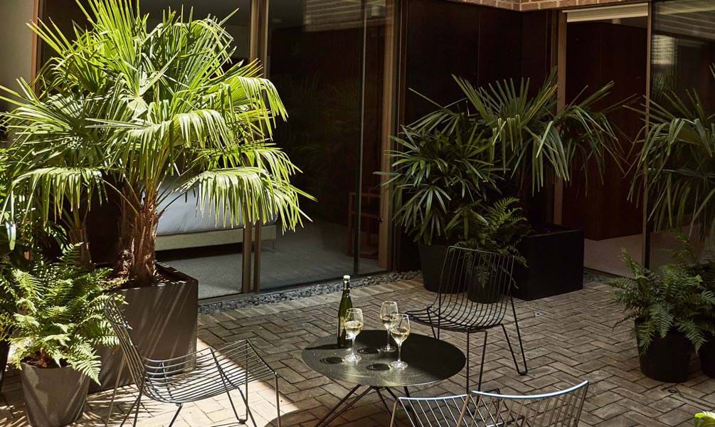 OUTDOOR SPACE: Planted Courtyard w Outdoor Dining & Lounge area.