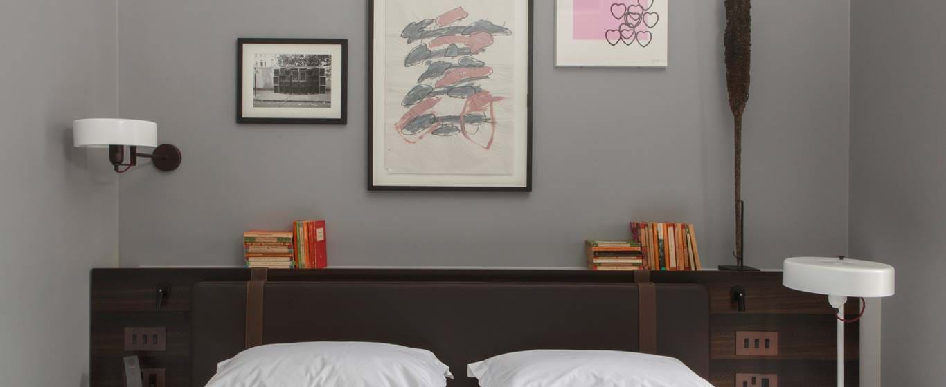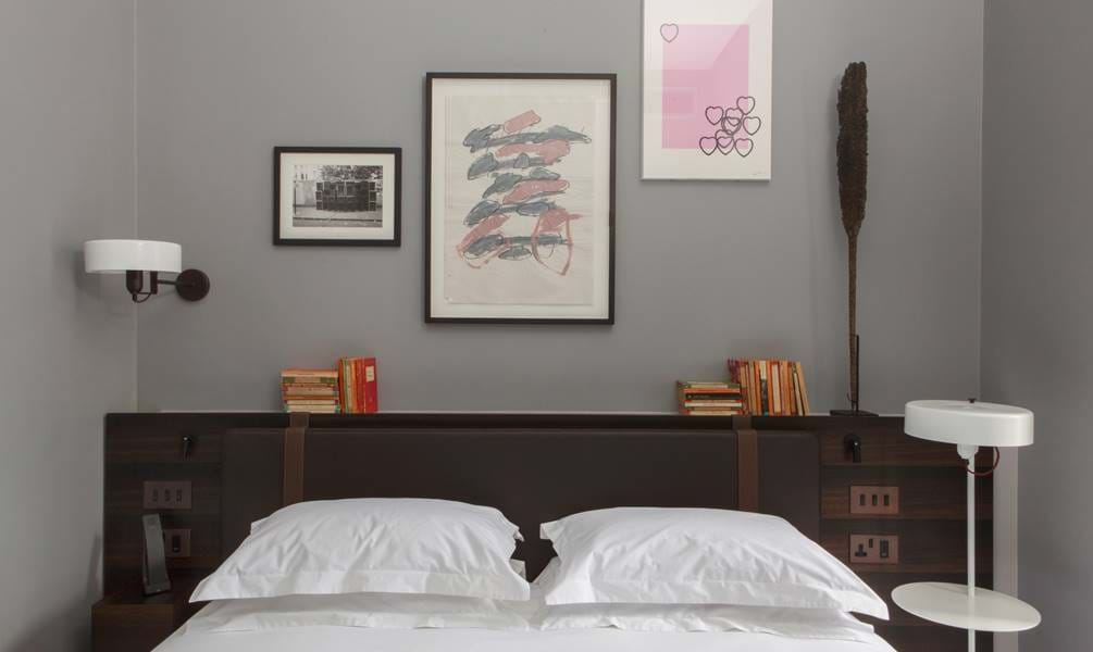 Above the bed you’ll find a gallery of artworks from local British artists and mixed with vintage curiosities from Notting Hill’s favourite antiques dealer, Jerome Dodd of Les Couilles Du Chien. There’s even desk space for the so inclined.